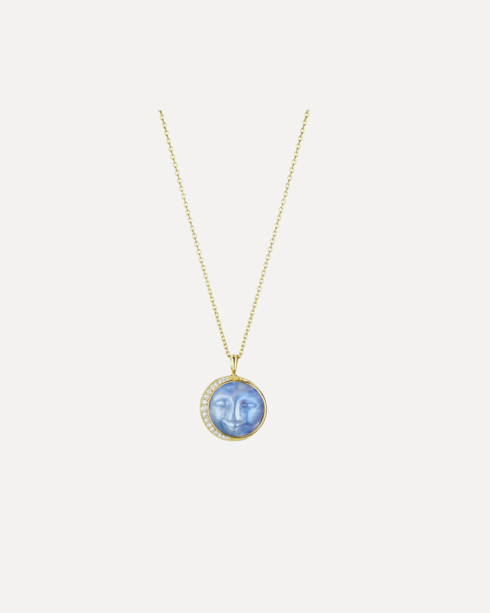 Add a touch of celestial charm with this yellow gold "Man on the Moon" pendant, featuring a luminous moonstone. Handmade in New York by Penny Preville, this playful piece captures the magic of the night sky, perfect for dreamers who love a little sparkle with their style.