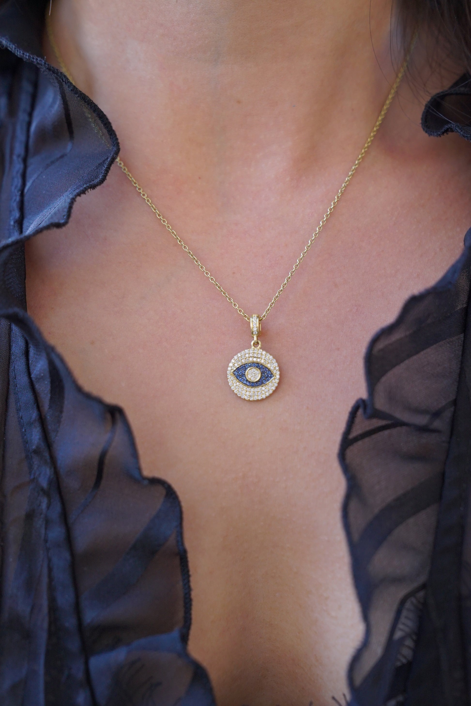 18k yellow gold Evil Eye Charm .45 cttw diamonds and .15 cttw sapphire