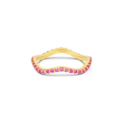 The Golden Hour Lull Bands are made for that feeling - that sunset that brings the color within you to life. Set in 14KY Fairmined gold, this wavy eternity band glows vibrant with 1.5mm hot pink sapphires — gemstones that blaze like the sky right before the sun drop below the horizon. Low-profile and comfort-fit, it stacks easy, wears bold, and reminds you of the magic at the end of a perfect, golden afternoon on the water.