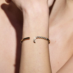 We love layering this bracelet with our Rainsun Tennis bracelet for a unique articulated layered diamond look.