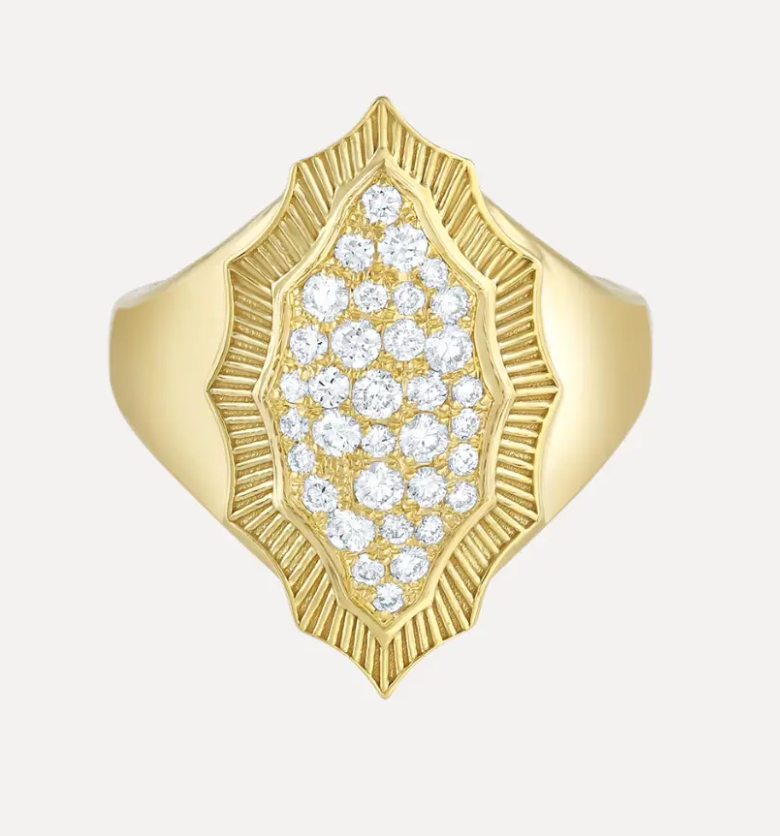 Mandorla means almond in Italian which refers to the shape. This almond-shaped aureole of light appears surrounding important figures in Buddhist and Christian art. It's an everyday reminder to acknowledge the sacred in our lives and the sacred energy. Set in 18k gold, this ring features .47 ctw of white diamonds.