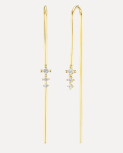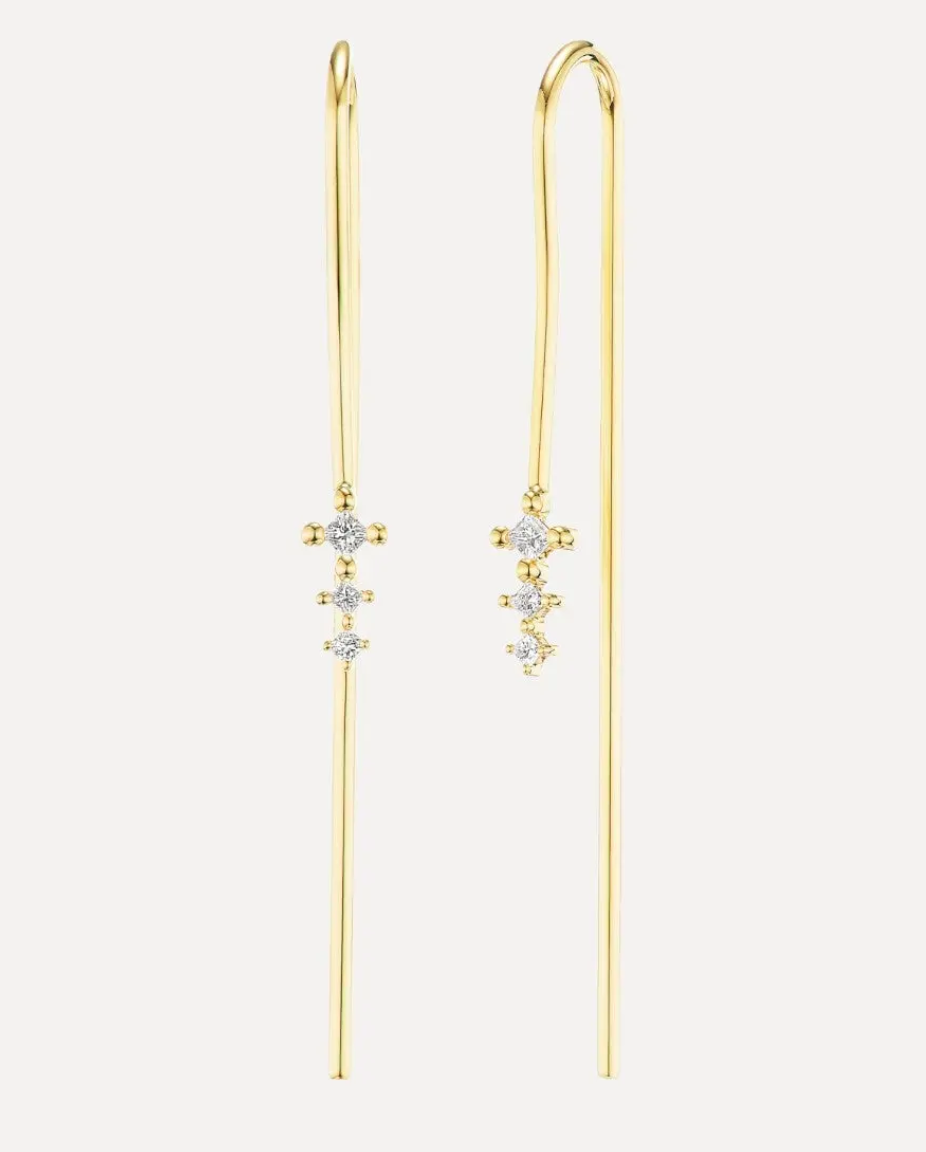 Suspended on long dramatic shepherd hooks, the graduated princess diamonds feature .085 ctw of white diamonds. These earrings look striking by themselves or layered with post earrings.