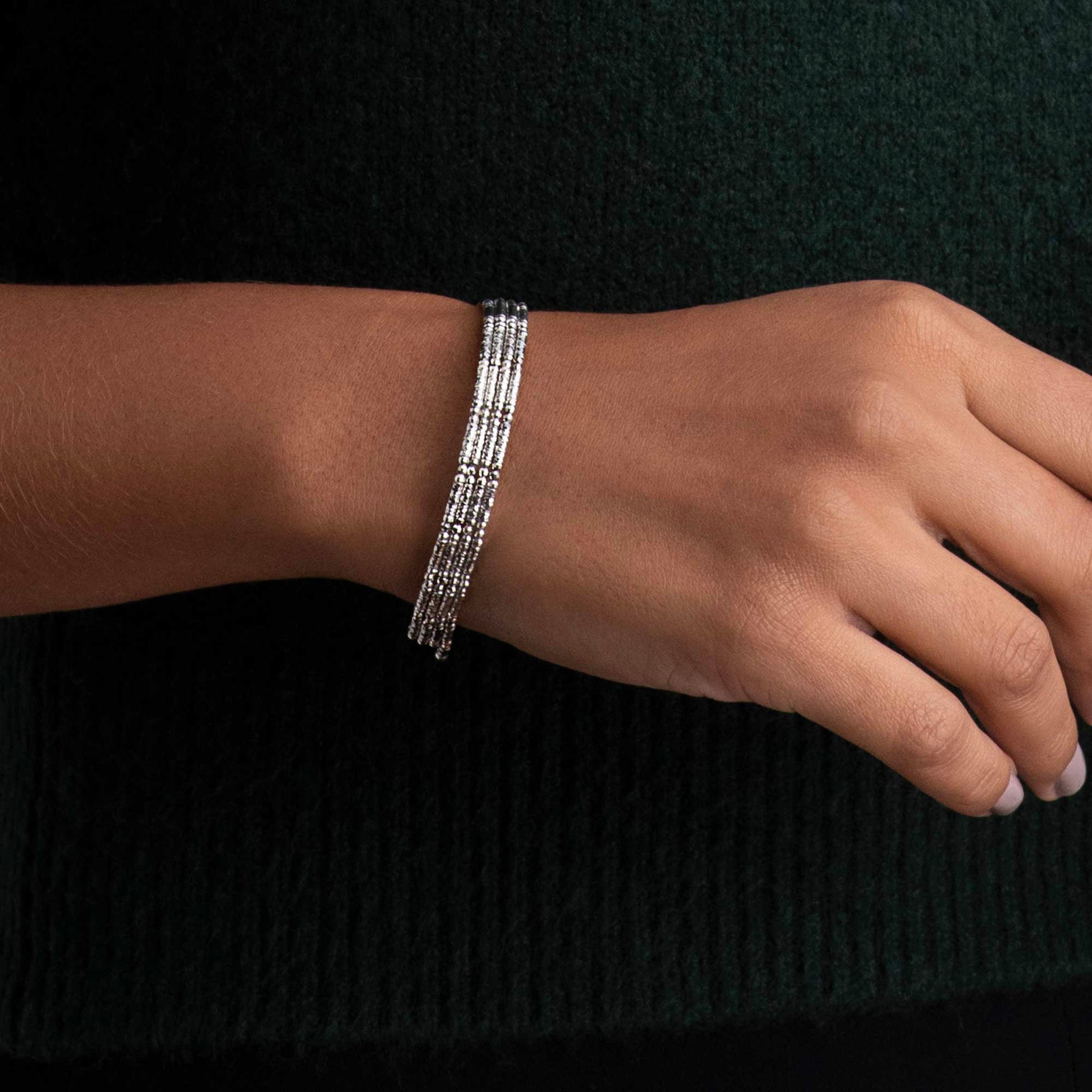 The versatile Luna Magnetic contains faceted magnets, allowing it to be fashioned in a multitude of ways. Wear it as a bracelet, a choker, or Y-shaped lariat. Modern and easy to wear, similar to the Magnetic Necklace, with a more faceted, textured surface.