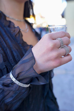 In the Triple Limitless Platinum Ring, three layers of faceted platinum beads create a subtle stacked style on the finger. Part of the Limitless Collection. The ring is size 5.5-7.