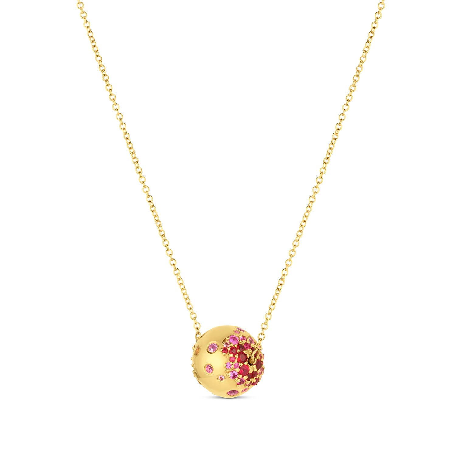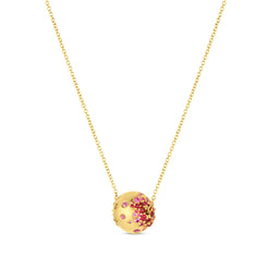 The Rolling Tides Pendant is made for that moment. Forged in 14KY Fairmined gold, this spinning, spherical pendant glows with sapphires in a westward-flowing ombré—red to gold, like the horizon catching fire as the day fades.