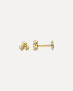 Description: A classic 14k yellow gold trio stud featuring three polished spheres for a subtle yet elevated look. Designed with a flatback for comfort and everyday wear.