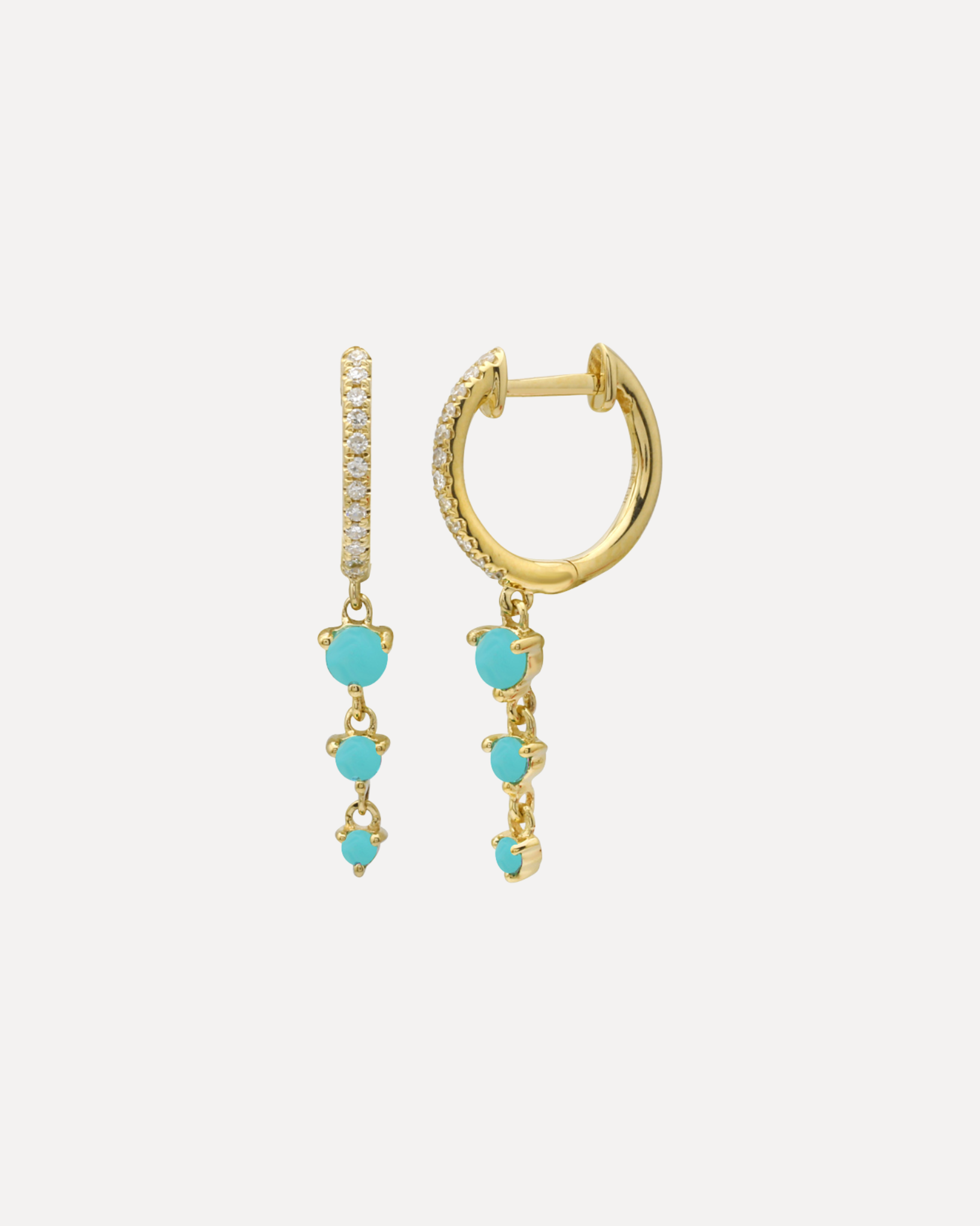Turquoise Dangling Diamond Huggie Earrings