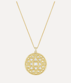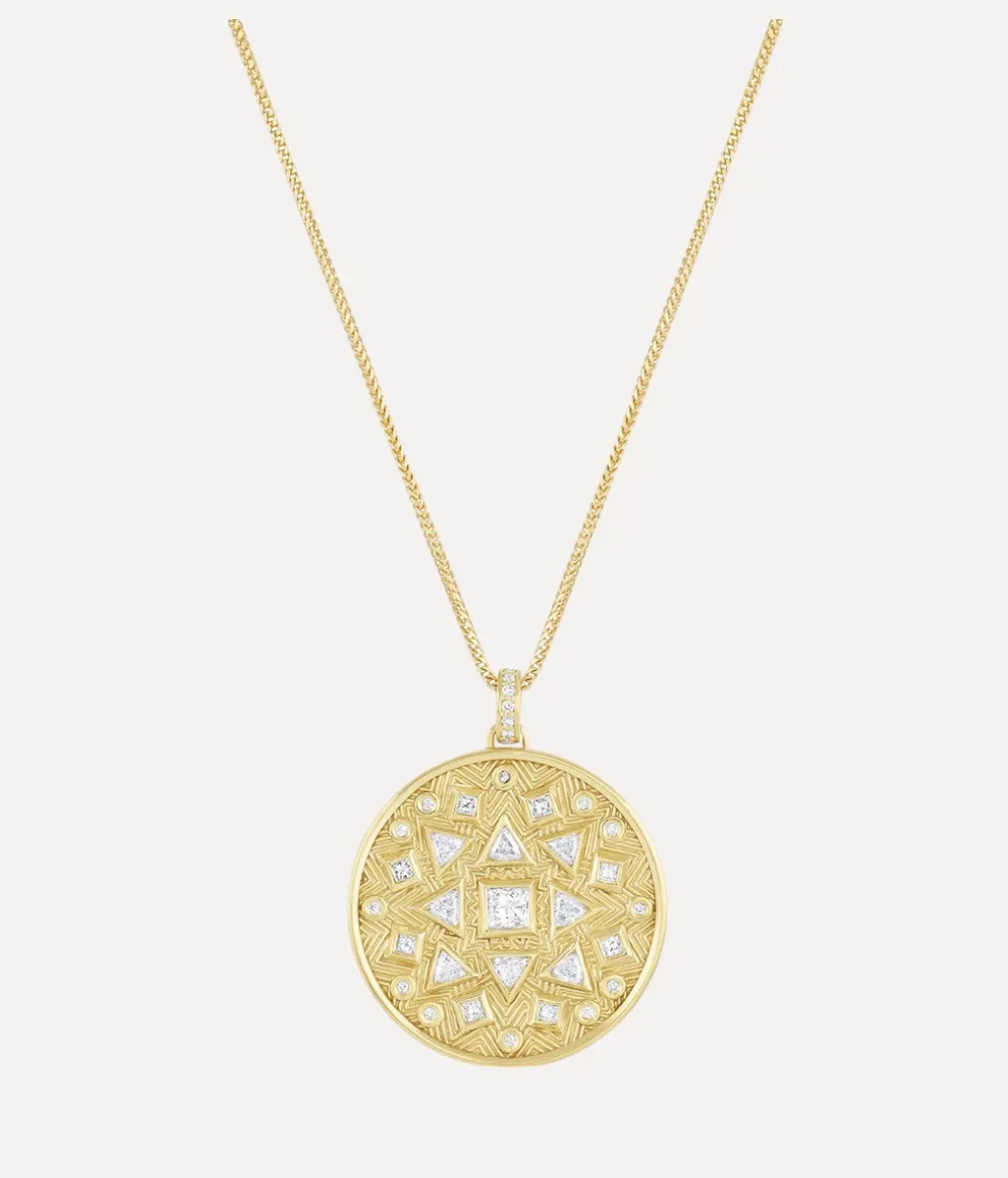 Designed to radiate strength and clarity, this medallion captures the idea of inner light bursting outward. Diamonds in varying shapes reflect and refract light across a pattern inspired by pure energy—encouraging the wearer to shine boldly and unapologetically.