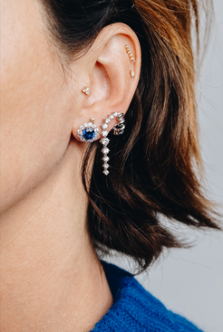 From Melissa Kaye's Aria Collection, the mini dagger earrings. 18k white gold with brilliant white diamonds ~ 1.5 cttw. The length is 29 mm and they are post and nut.