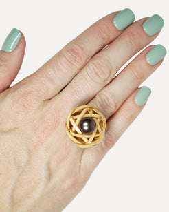 Elevate your style with this playful bamboo ring featuring a captivating black pearl set in radiant 18k yellow gold. The unique bamboo-inspired design adds a touch of nature’s charm, while the deep black pearl brings an air of mystery and elegance. Perfect for those who love a blend of edgy and refined, this ring offers a fresh twist on classic jewelry. Whether you're dressing up or adding a bit of fun to your everyday look, this ring is sure to spark conversations and compliments wherever you go.
